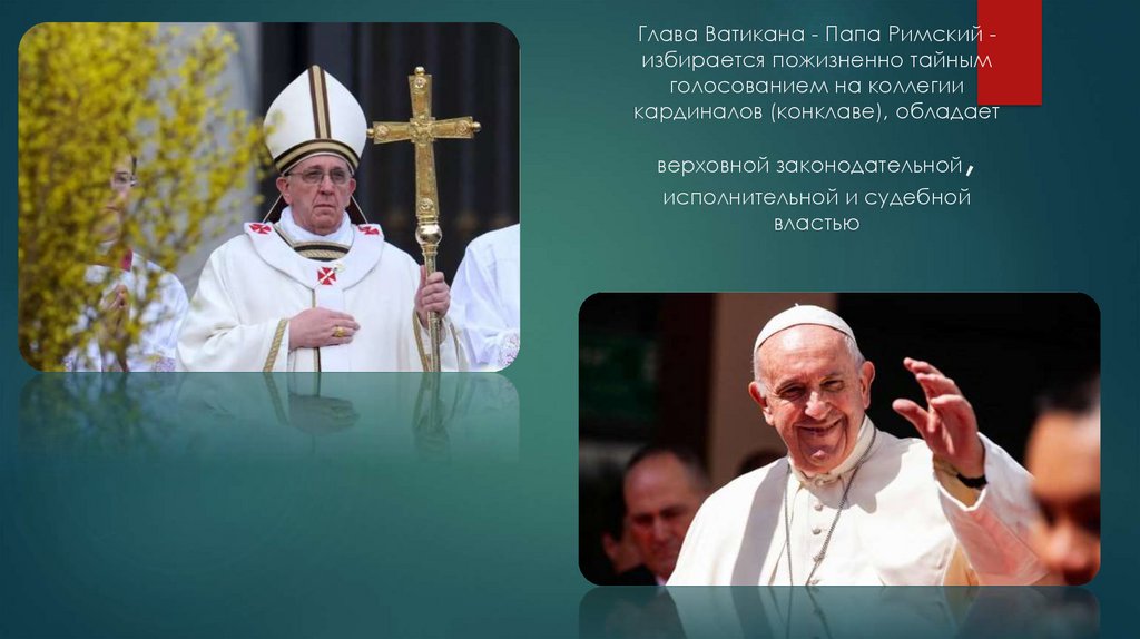 Глава Ватикана - Папа Римский избирается пожизненно тайнымголосованием на коллегии