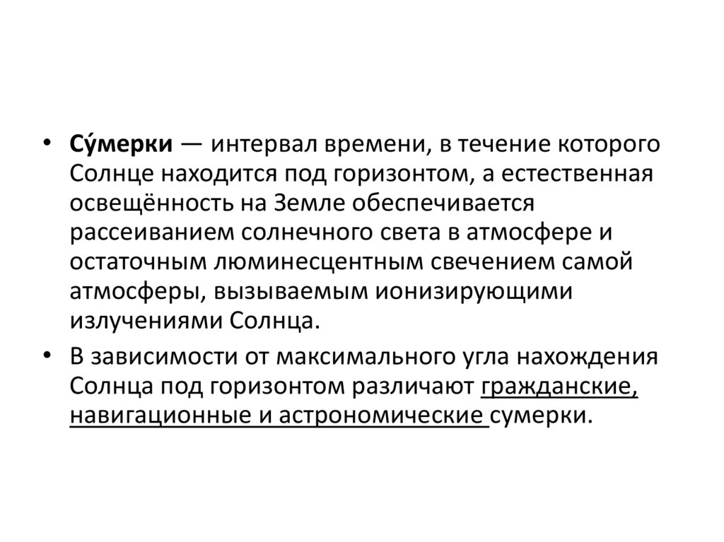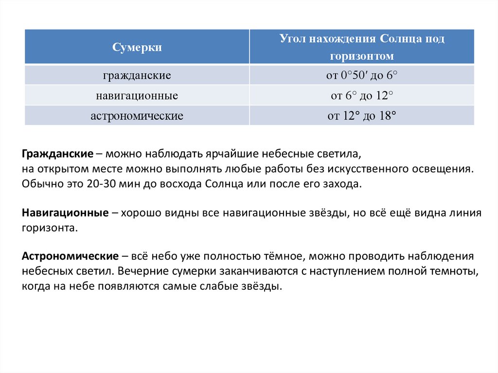 небесных светил. Вечерние сумерки заканчиваются с наступлением полной темноты,