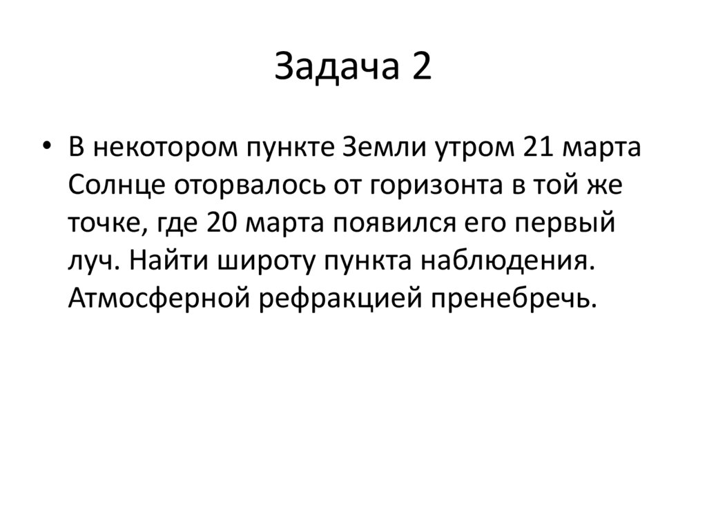 • Широта пункта = 55°30' с.ш., долгота λ =