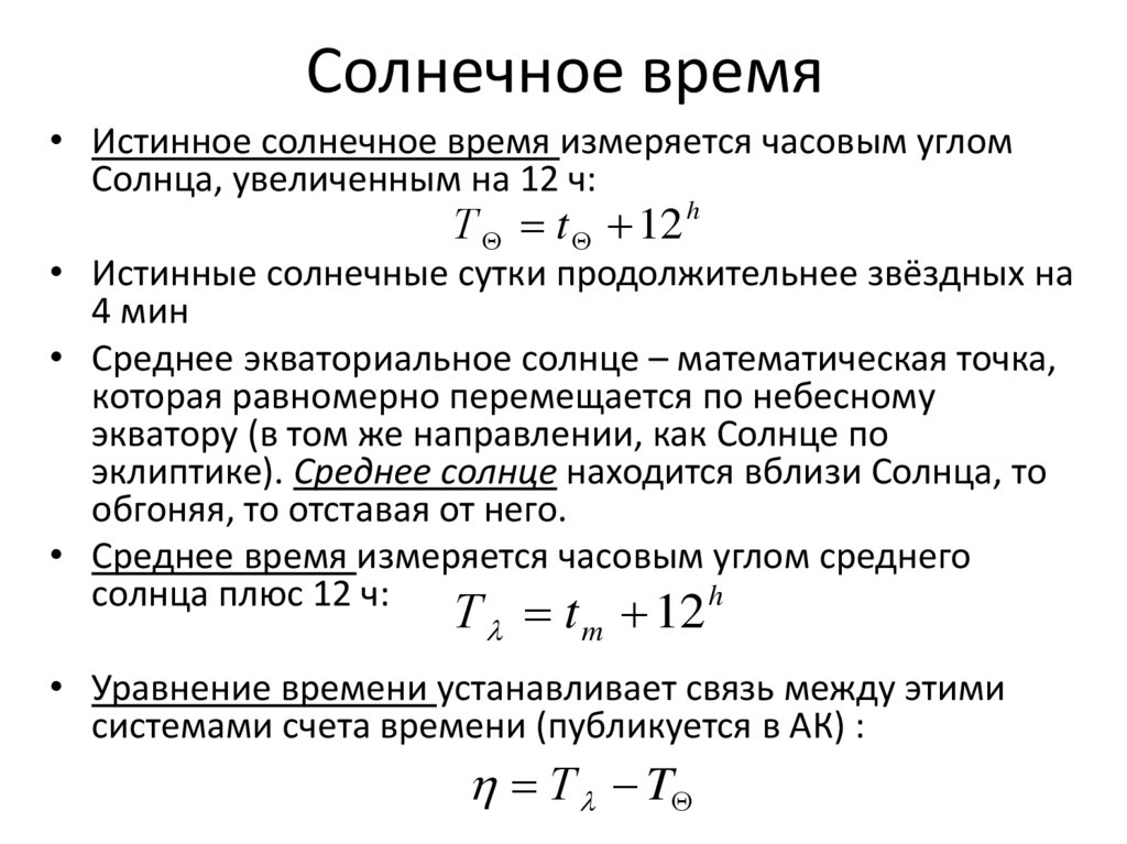 Солнечное время• Истинное солнечное время измеряется часовым углом