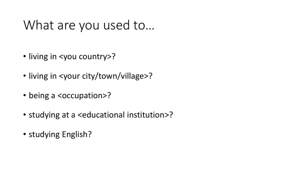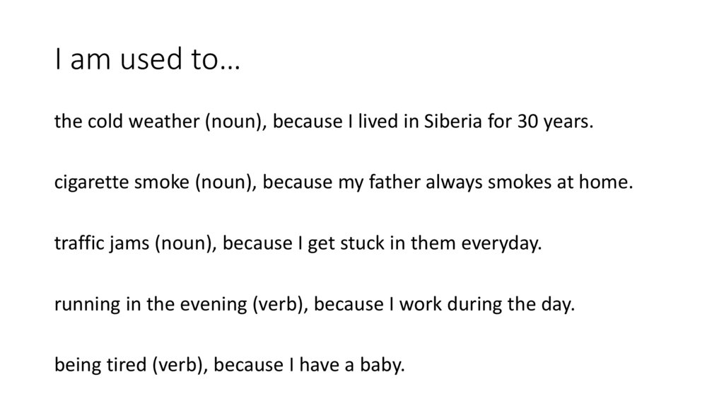 I am used to…the cold weather (noun), because I lived in Siberia for 30 years.