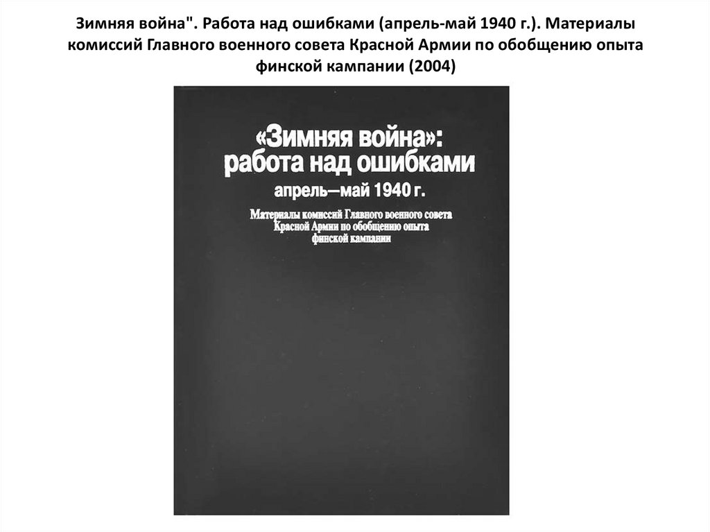 Зимняя война". Работа над ошибками (апрель-май 1940 г.). Материалыкомиссий Главного военного совета Красной Армии по обобщению опыта