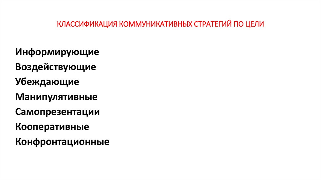 КЛАССИФИКАЦИЯ КОММУНИКАТИВНЫХ СТРАТЕГИЙ ПО ЦЕЛИИнформирующие