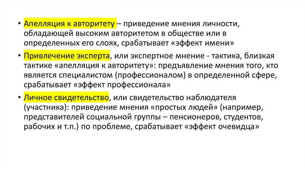 тактике «апелляция к авторитету»: предъявление мнения того, кто