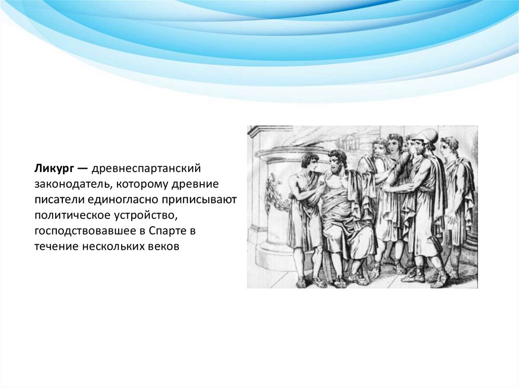 Ликург — древнеспартанскийзаконодатель, которому древние
