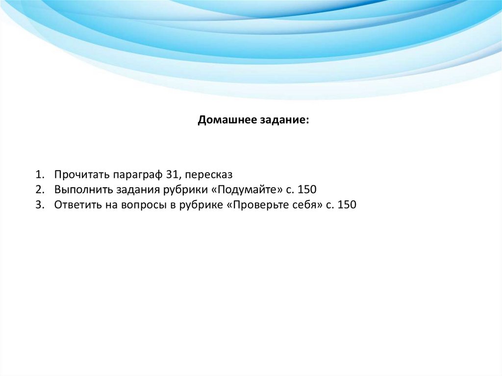 Домашнее задание:1. Прочитать параграф 31, пересказ