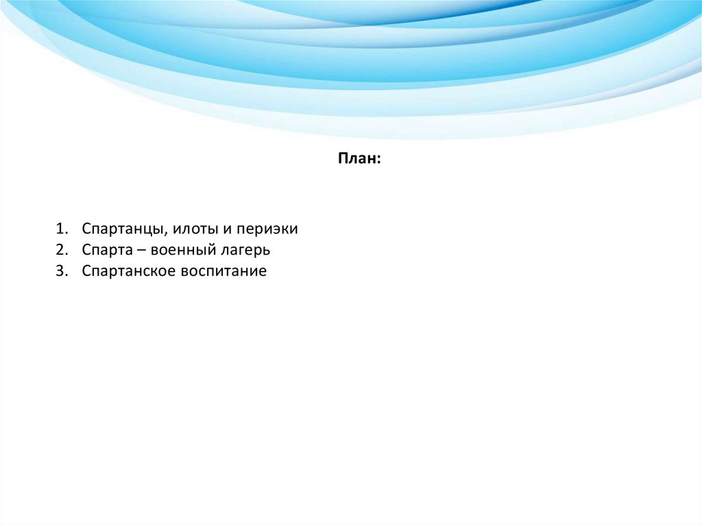 План:1. Спартанцы, илоты и периэки
