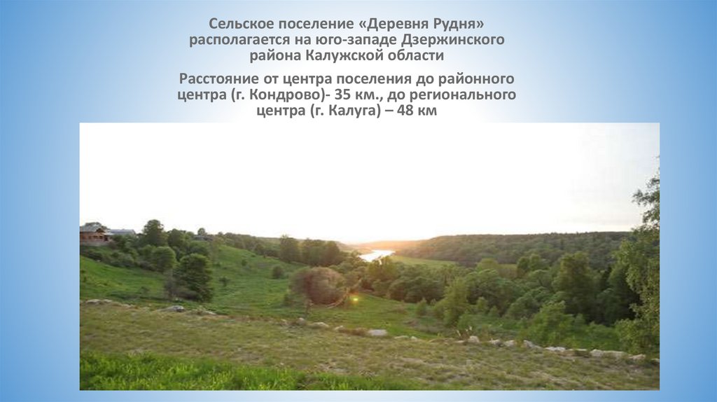 Сельское поселение «Деревня Рудня»располагается на юго-западе Дзержинского