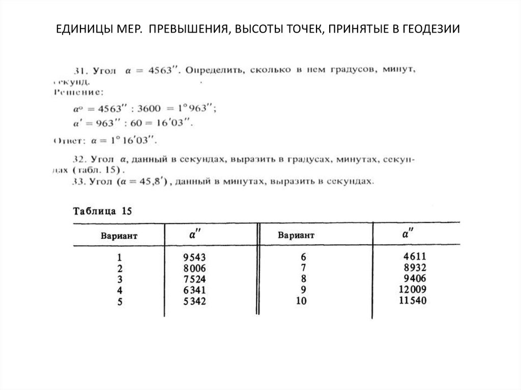 ЕДИНИЦЫ МЕР. ПРЕВЫШЕНИЯ, ВЫСОТЫ ТОЧЕК, ПРИНЯТЫЕ В ГЕОДЕЗИИ3.
