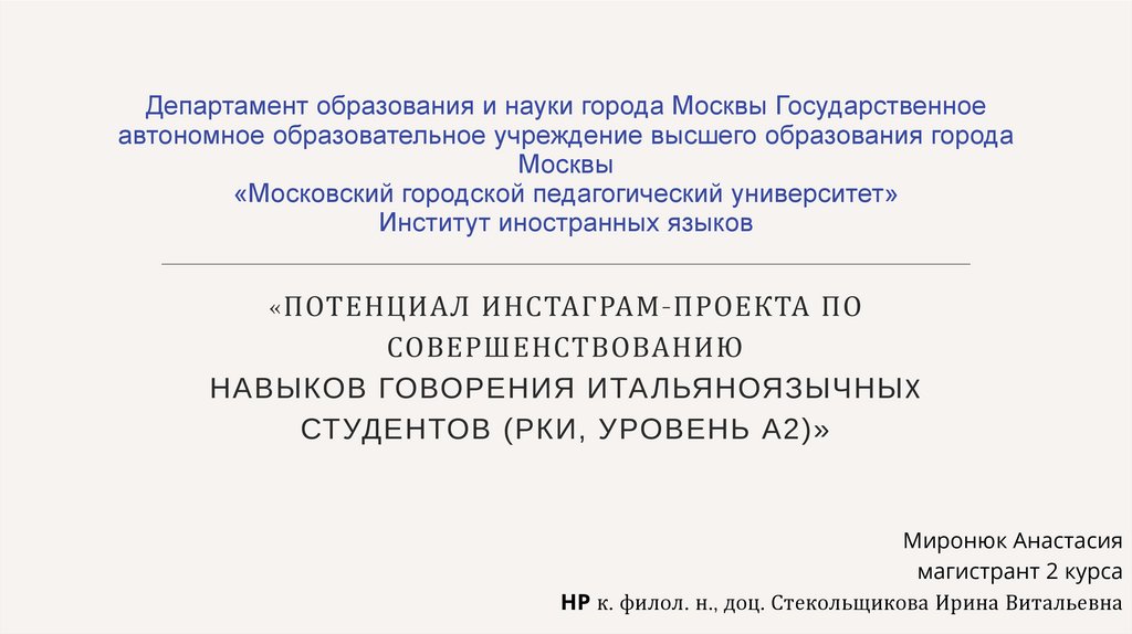 Потенциал инстаграм-проекта по совершенствованию навыков говорения итальяно-язычных студентов (РКИ, уровень А2))