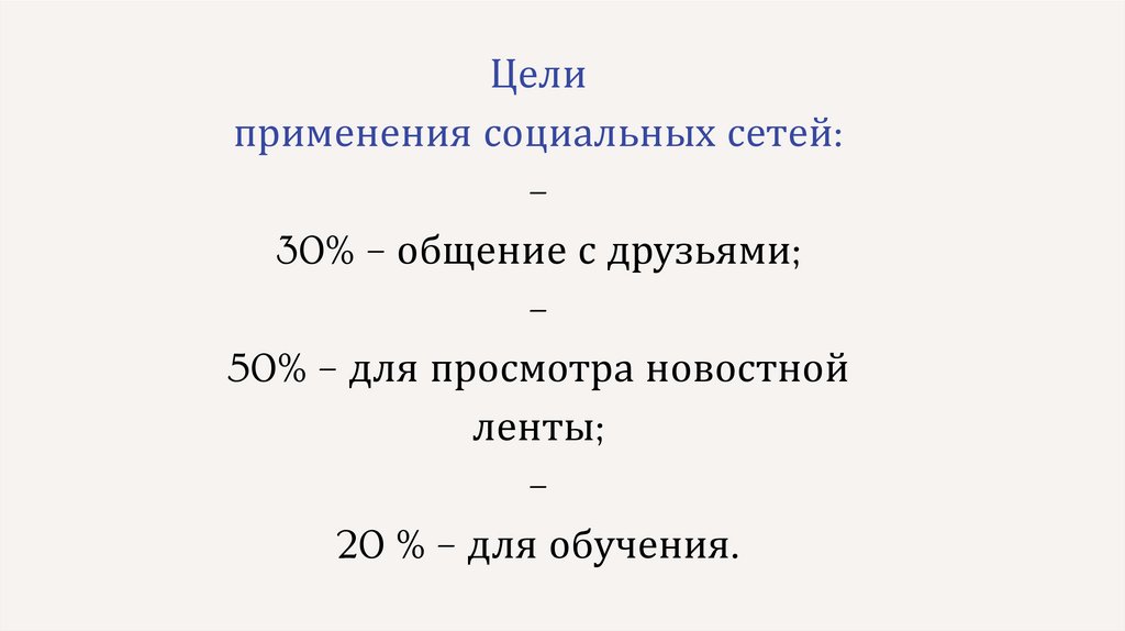 Целиприменения социальных сетей: