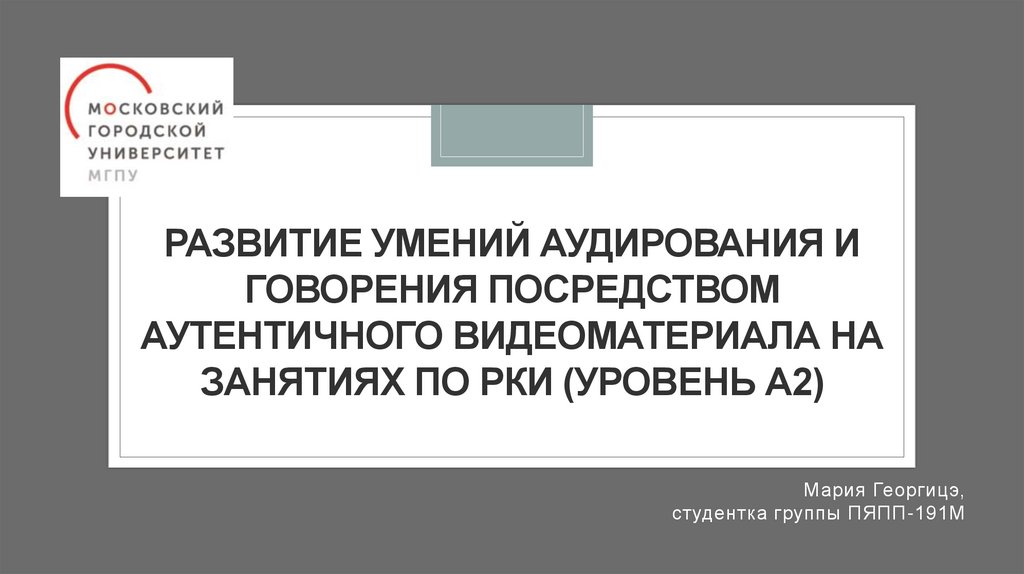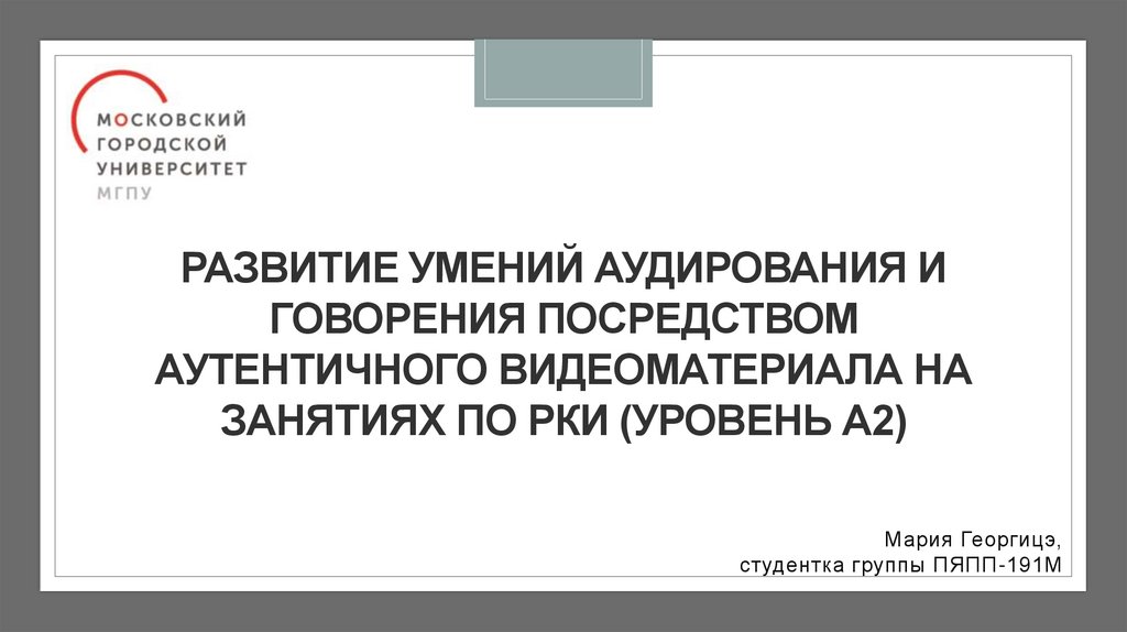 Развитие умений аудирования и говорения посредством аутентичного видеоматериала на занятиях по РКИ (уровень А2)
