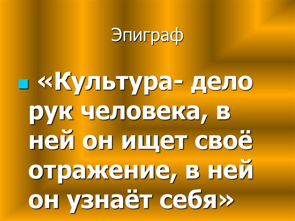 Эпиграф«Культура- дело