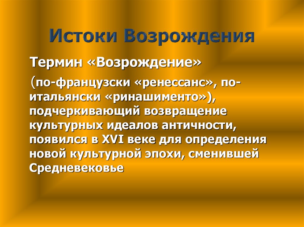 Термин «Возрождение»(по-французски «ренессанс», по-