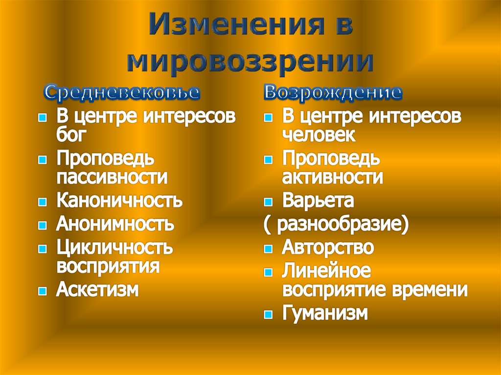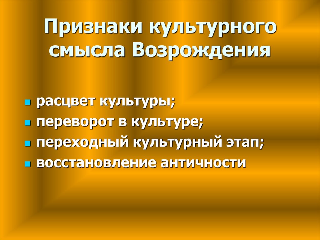 Признаки культурногосмысла Возрождения