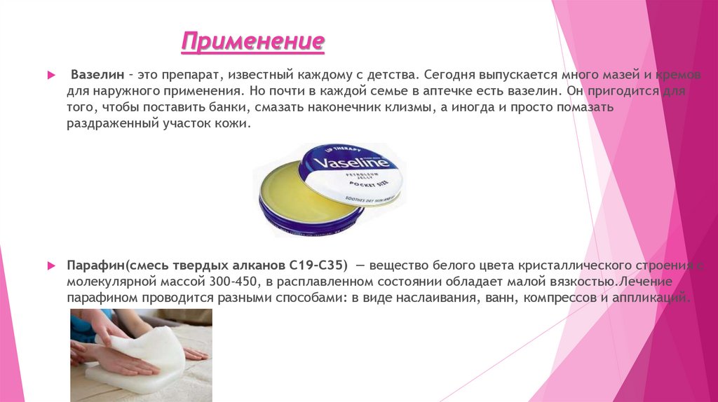 ПрименениеВазелин – это препарат, известный каждому с детства. Сегодня выпускается много мазей и кремов