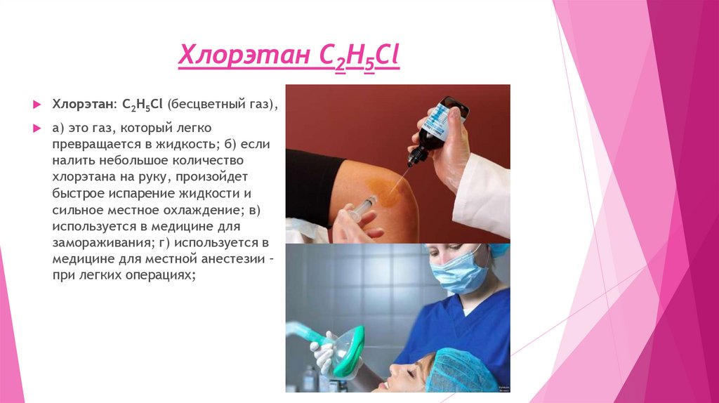 Хлорэтан C2H5ClХлорэтан: C2H5Cl (бесцветный газ),
