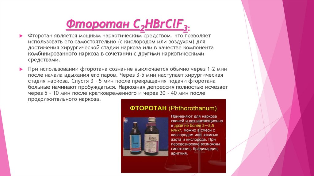 Фторотан C2HBrClF3:Фторотан является мощным наркотическим средством, что позволяет