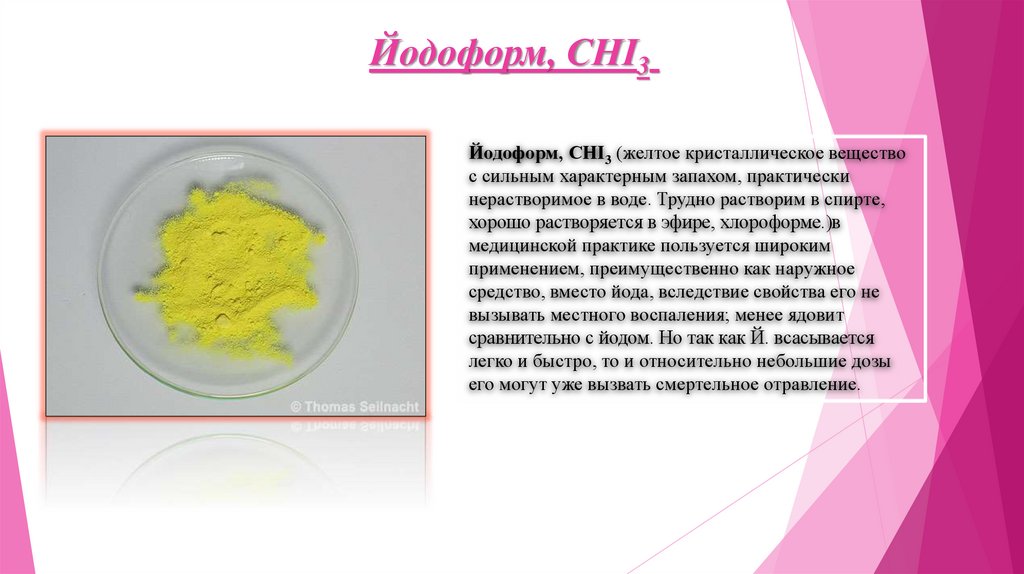 Йодоформ, СНІ3Йодоформ, СНІ3 (желтое кристаллическое вещество