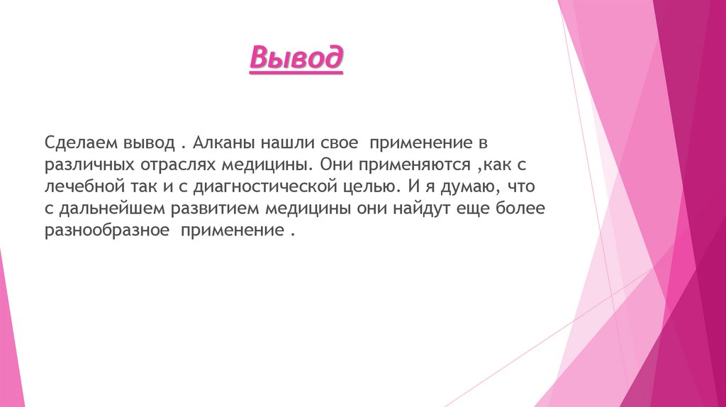 ВыводСделаем вывод . Алканы нашли свое применение в