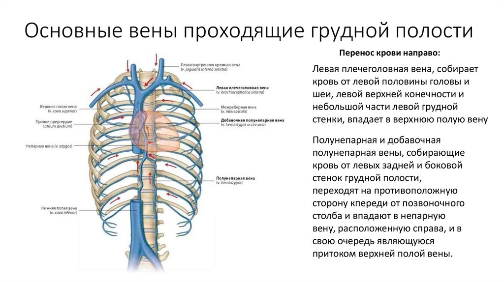 Основные вены проходящие грудной полостиПеренос крови направо: