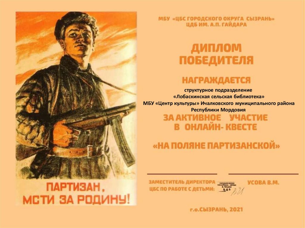 Диплом победителя. Структурное подразделение «Лобаскинская сельская библиотека» МБУ «Центр культуры»