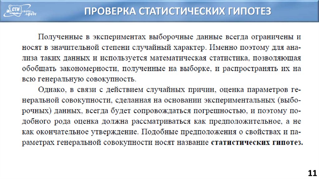 ПРОВЕРКА СТАТИСТИЧЕСКИХ ГИПОТЕЗ11