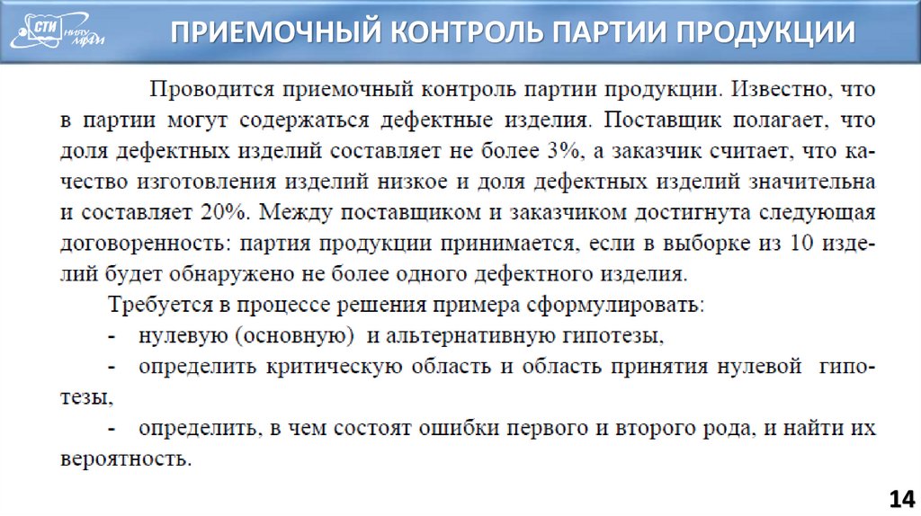 ПРИЕМОЧНЫЙ КОНТРОЛЬ ПАРТИИ ПРОДУКЦИИ14