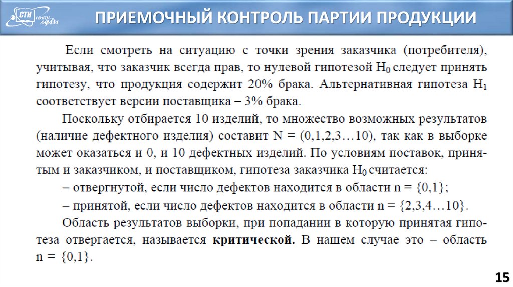 ПРИЕМОЧНЫЙ КОНТРОЛЬ ПАРТИИ ПРОДУКЦИИ15