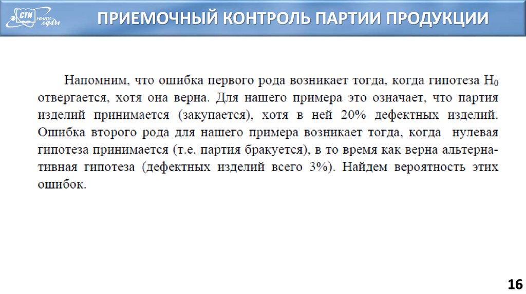 ПРИЕМОЧНЫЙ КОНТРОЛЬ ПАРТИИ ПРОДУКЦИИ16