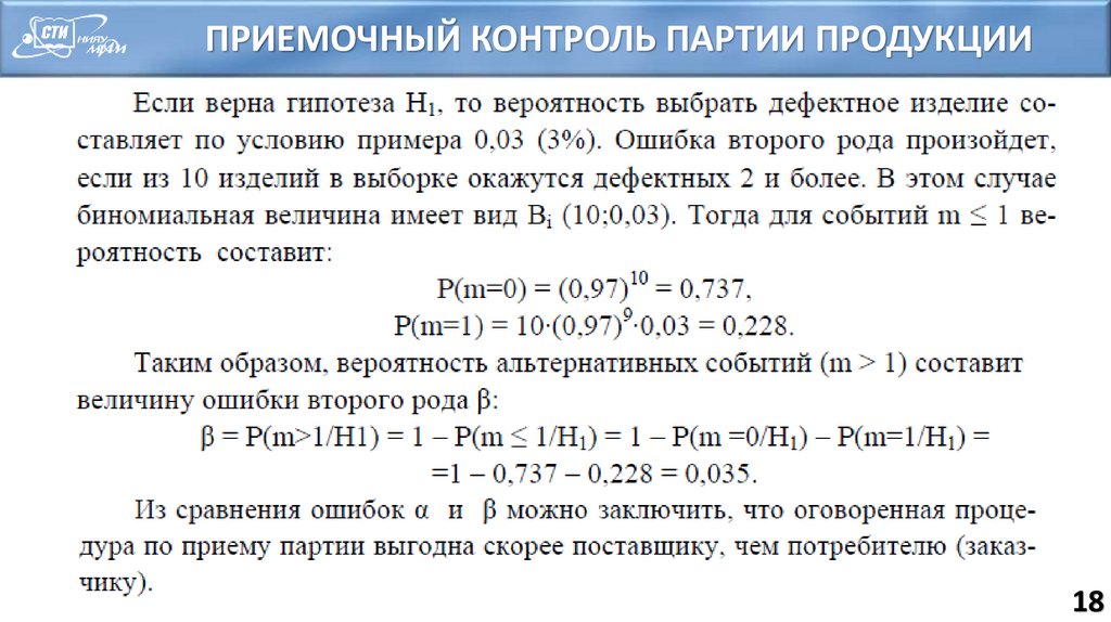 ПРИЕМОЧНЫЙ КОНТРОЛЬ ПАРТИИ ПРОДУКЦИИ18