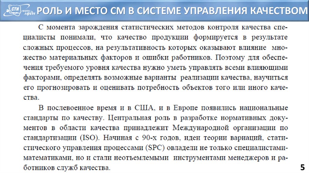 РОЛЬ И МЕСТО СМ В СИСТЕМЕ УПРАВЛЕНИЯ КАЧЕСТВОМ5