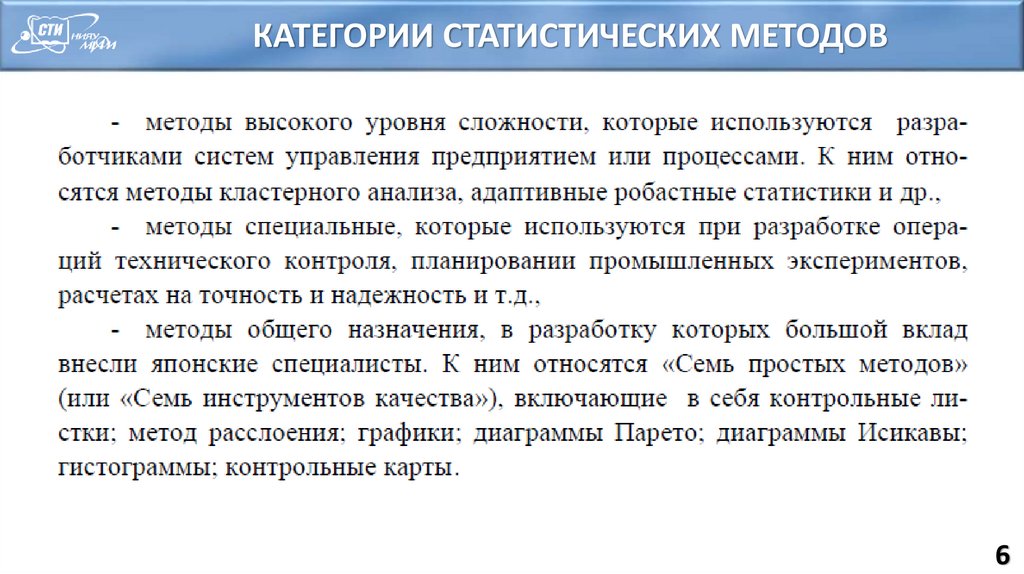 КАТЕГОРИИ СТАТИСТИЧЕСКИХ МЕТОДОВ6