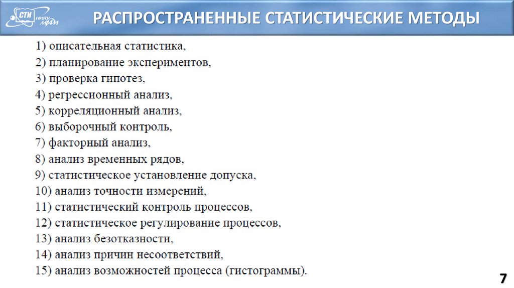 РАСПРОСТРАНЕННЫЕ СТАТИСТИЧЕСКИЕ МЕТОДЫ7
