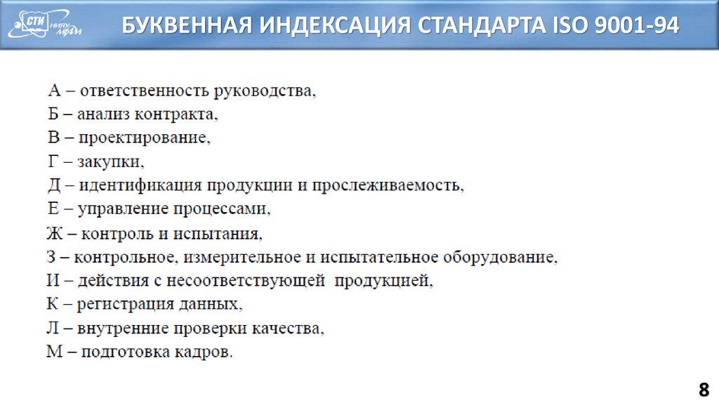 БУКВЕННАЯ ИНДЕКСАЦИЯ СТАНДАРТА ISO 9001-948