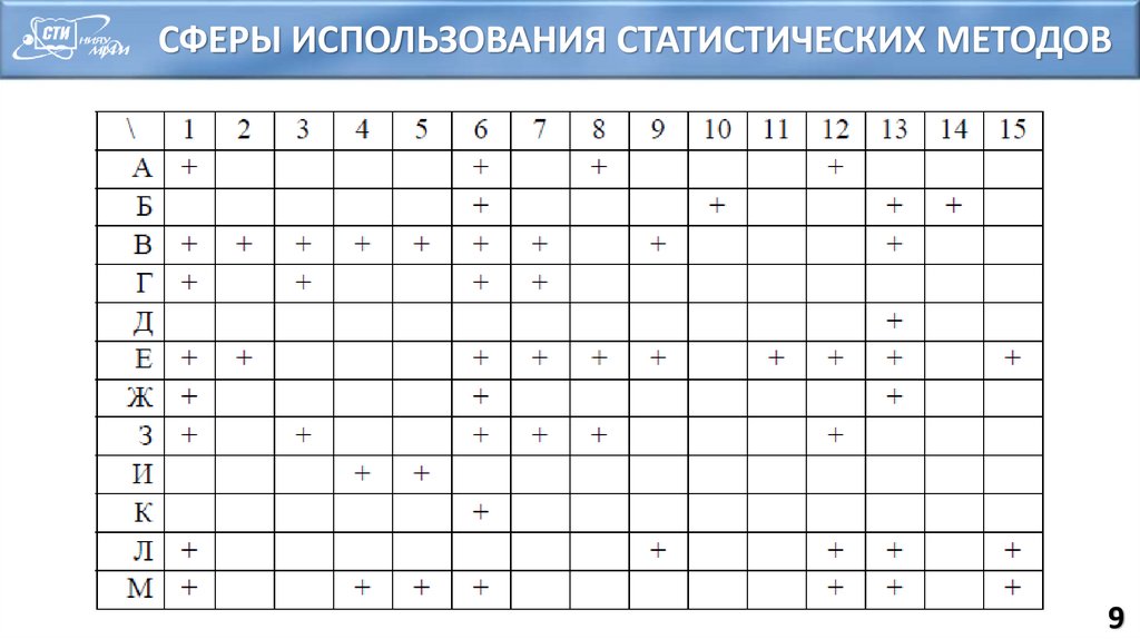 СФЕРЫ ИСПОЛЬЗОВАНИЯ СТАТИСТИЧЕСКИХ МЕТОДОВ9