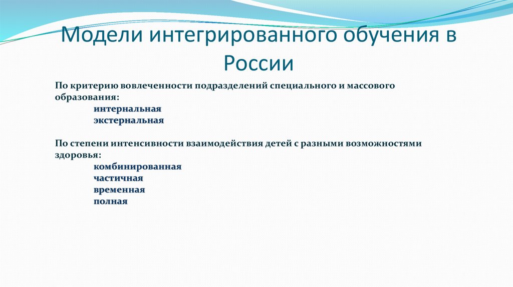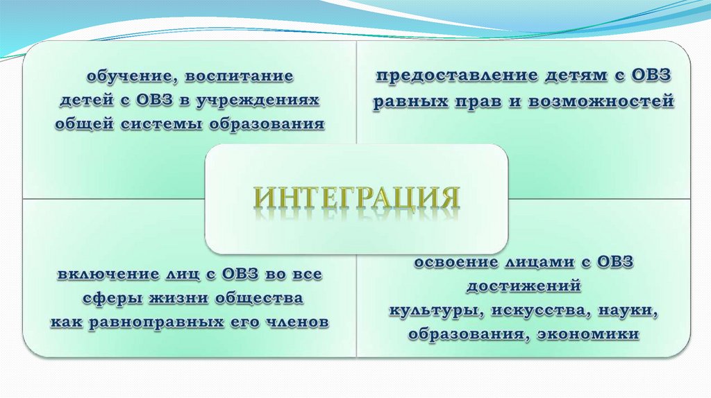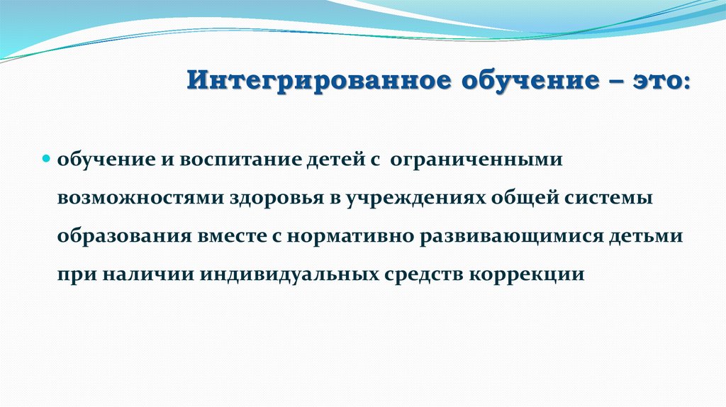 Интегрированное обучение – это:обучение и воспитание детей с ограниченными