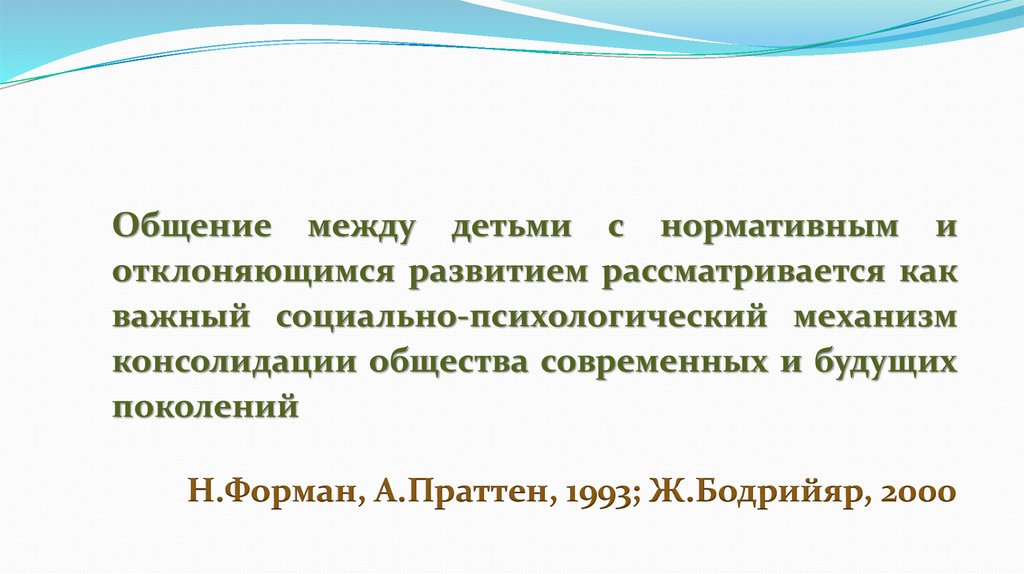 Общение между детьми с нормативным иотклоняющимся развитием рассматривается как