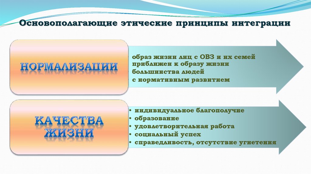 Основополагающие этические принципы интеграции• образ жизни лиц с ОВЗ и их семей