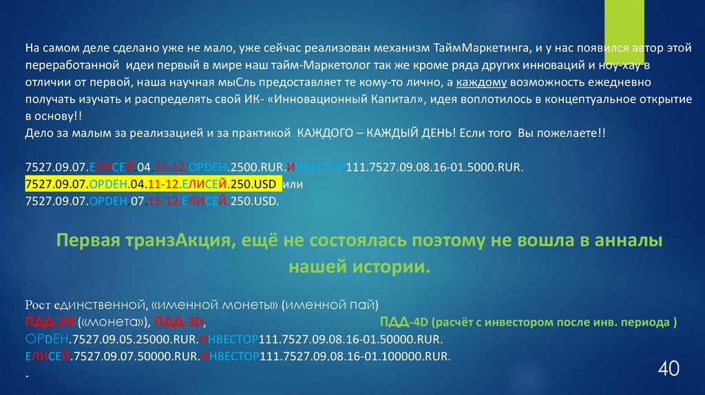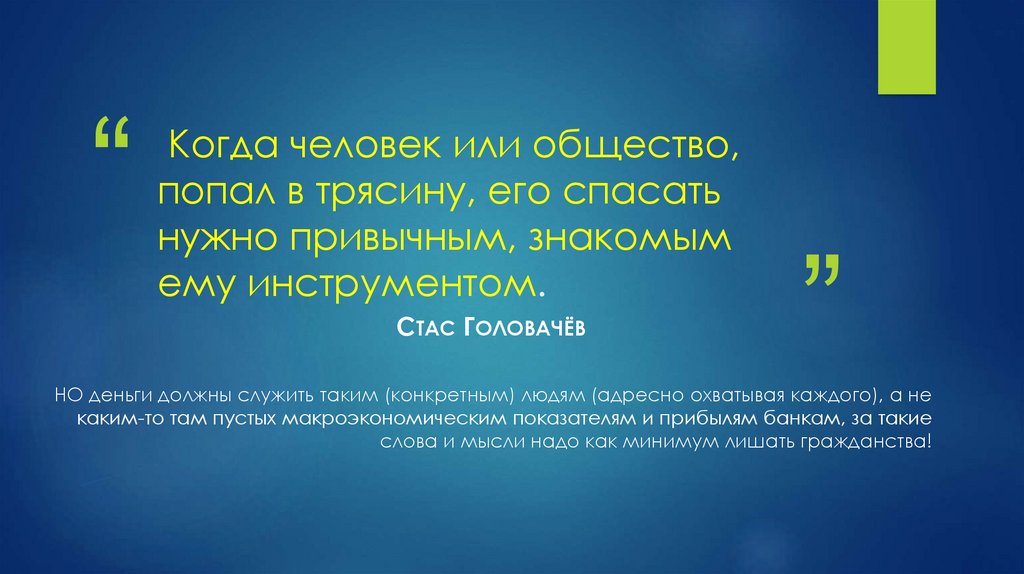 «Мы изменили свойство денег, превратив их в правильные, объективные Учётные единицы, за обмен на то что