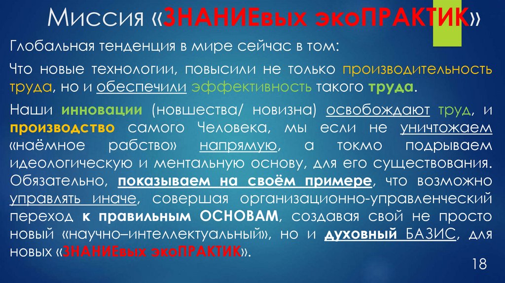 ЗНАНИЕвые экоПРАКТИКИ, как следующий тех. уклад для всей мировойЭкономики. Через: инноватику, «Управление (менеджмент) Знаний», и к