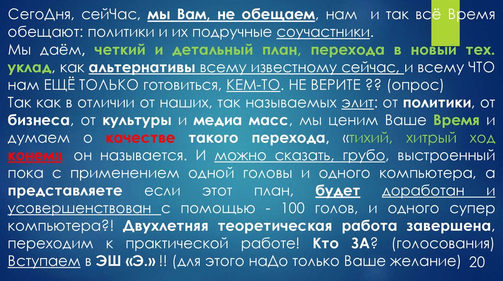 из 13. док. «От «игры в деньги»* к Экономике Знаний и обмену полезным Опытом».