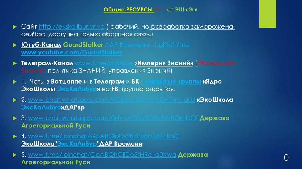 Общие РЕСУРСЫ Э.З. от ЭШ «Э.»Сайт http://ekskalibur.vr.vc ( рабочий, но разработка заморожена,