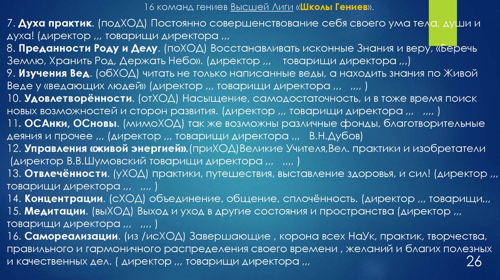 «Отключи себя от корпораций и тнк, и подключи (команды) корпорации Знаний к себя, и у себя!!»