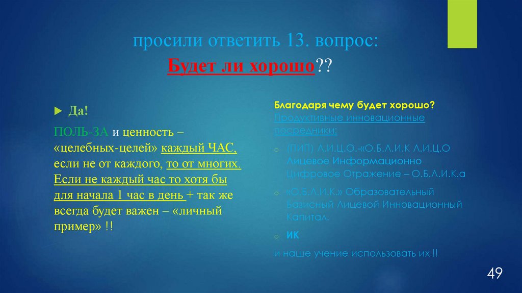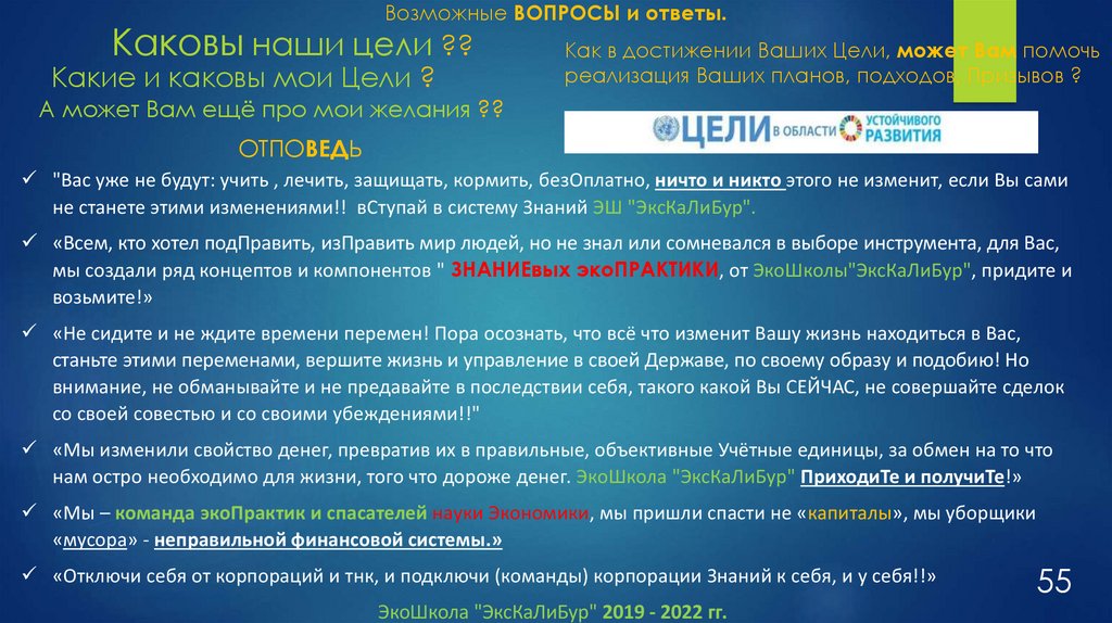 Возможные ВОПРОСЫ и ответы.Каковы наши цели ??