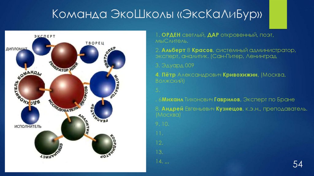 Команда ЭкоШколы «ЭксКаЛиБур»1. ОРДЕН светлый, ДАР откровенный, поэт,