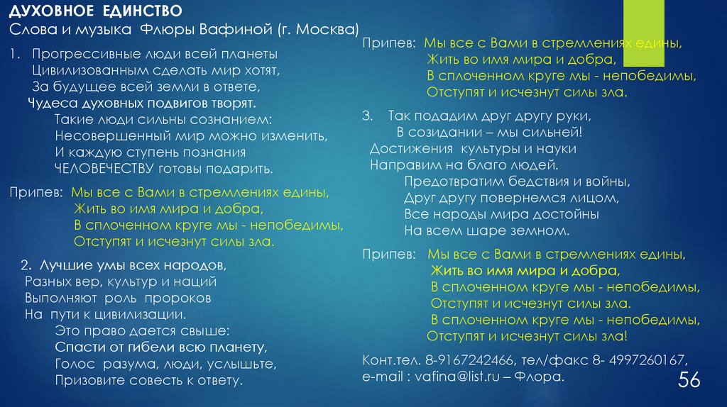 ДУХОВНОЕ ЕДИНСТВОСлова и музыка Флюры Вафиной (г. Москва)