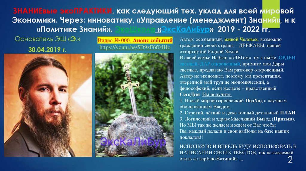 мы создали ряд концептов и компонентов " ЗНАНИЕвых экоПРАКТИКИ, от ЭкоШколы"ЭксКаЛиБур", придите и