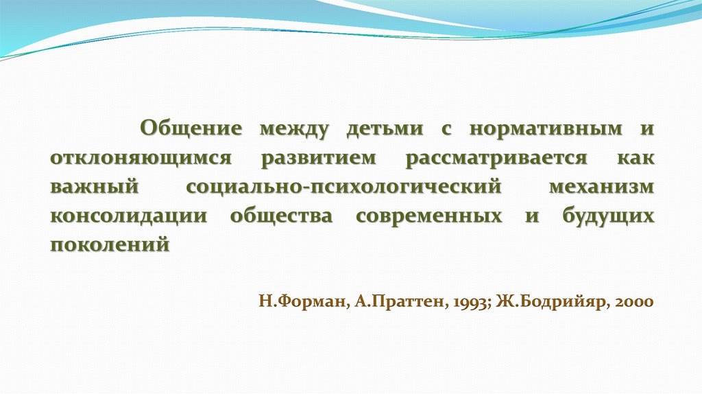 Общение между детьми с нормативным иотклоняющимся развитием рассматривается как