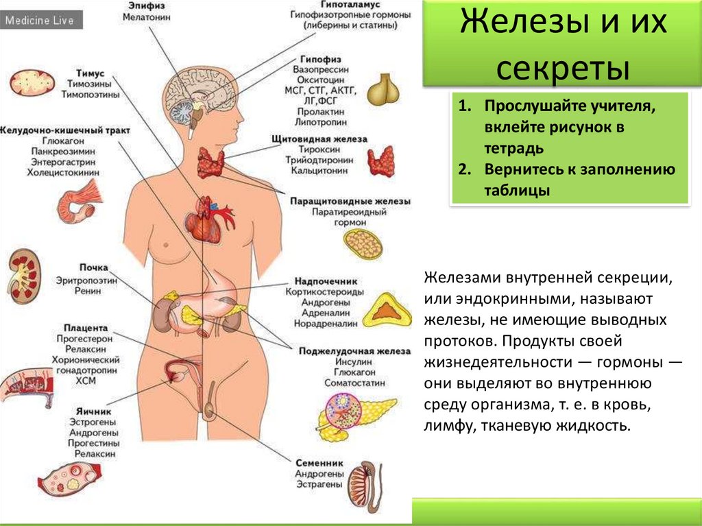Месторасположение эндокринных, экзокринных и смешанных желез